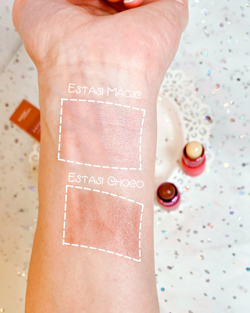 Estasi Magic ed Estasi Choco possono essere utilizzati da soli o insieme, un po’ come se Estasi Magic fosse un blush in stick super delicato ed Estati Choco uno stick adatto a scolpire il viso.